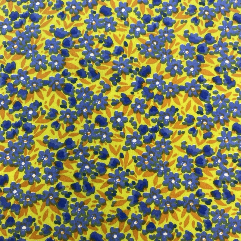 Ce tissu chemisier scarlet bleu jaune en 100% polyester sera facile d’entretien et aura un tombé agréable et souple.