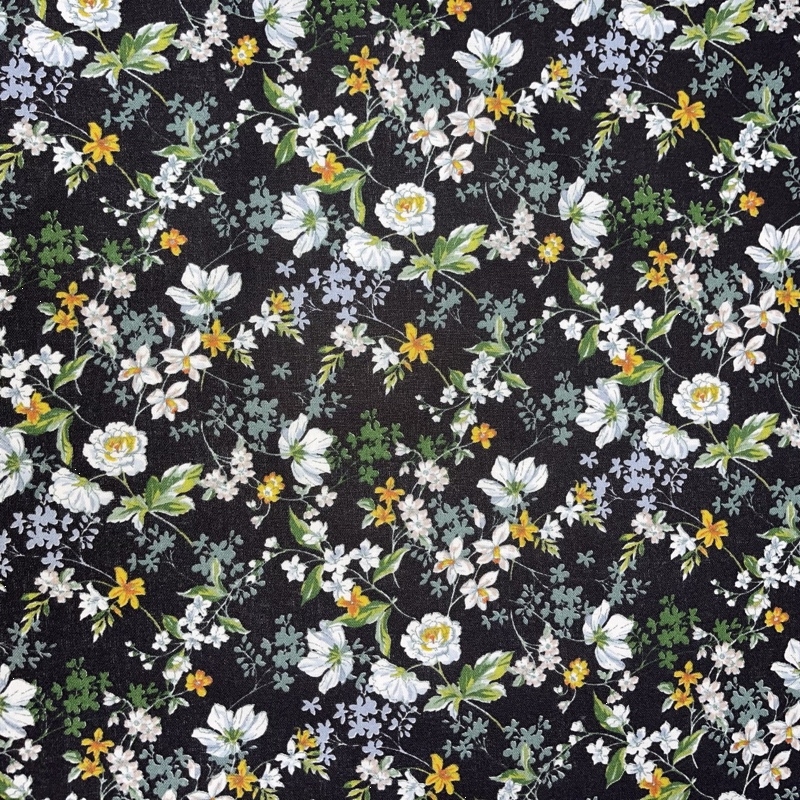 Ce tissu coton fleur fond noir à l'avantage d'être un 100% coton !