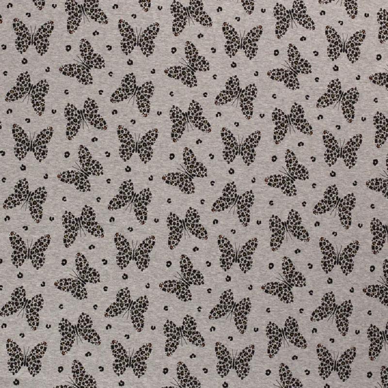 Ce tissu molleton papillon gris noir fera le bonheur des plus petits comme les plus grands ! Idéal pour créer de beaux vêtements personnalisés (pull, short, jogging...), le motif papillon fera sensation auprès de tous !