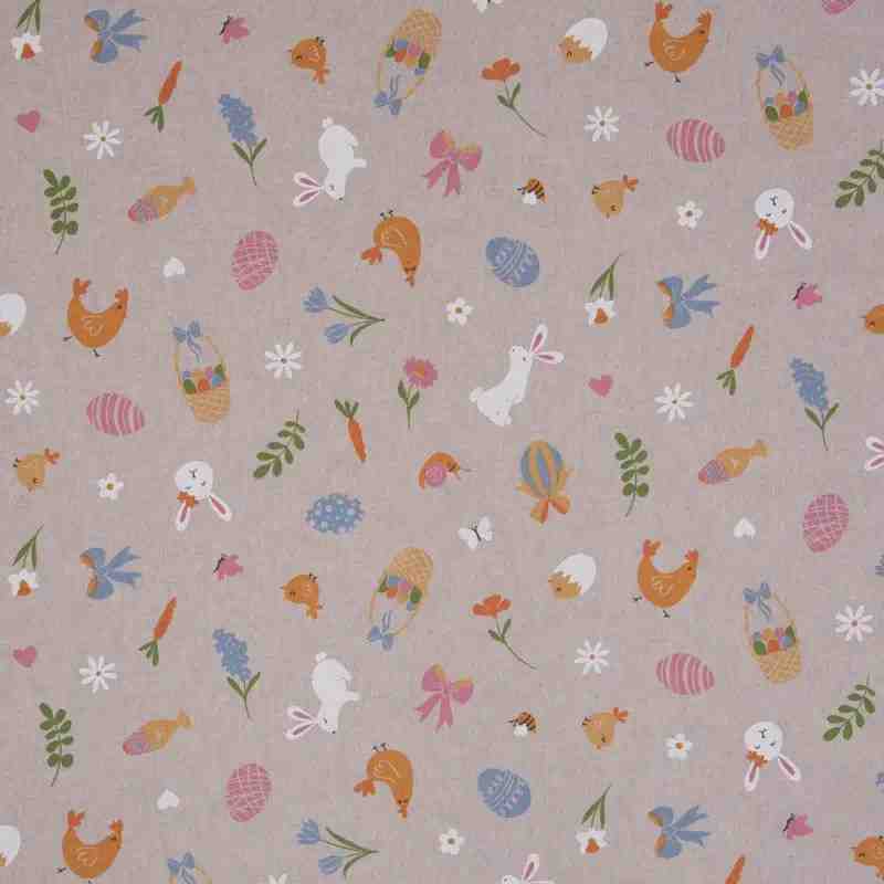 TISSU ASPECT LIN MOTIFS PÂQUES DOUX ET ENFANTINS