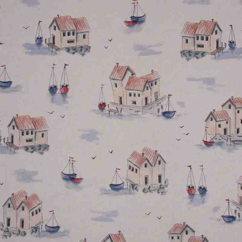 TISSU ASPECT LIN IMPRIMÉ MAISONS DE PÊCHEURS