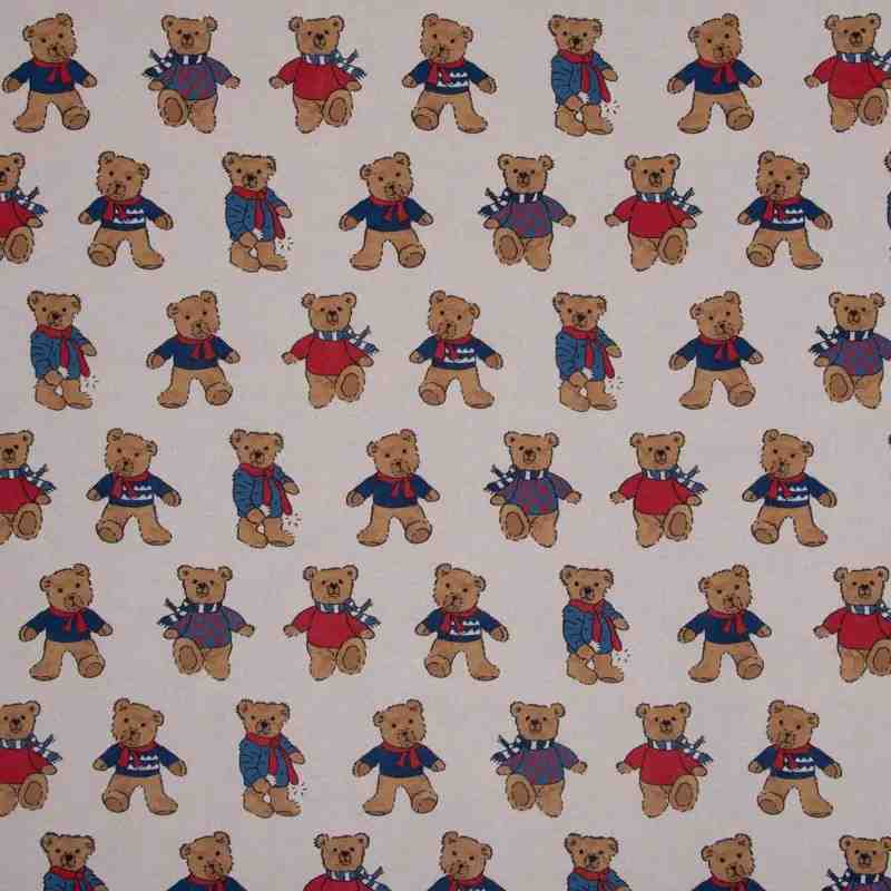 TISSU ASPECT LIN IMPRIMÉ OURSONS ENFANTS BEIGE