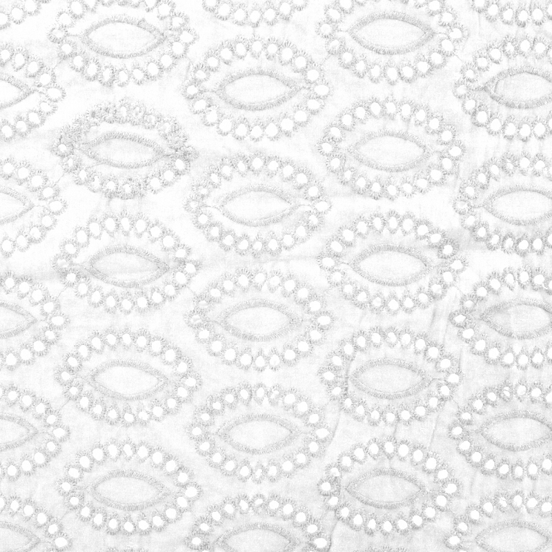 Évoquant les champs de lavande sous le soleil d'été, notre Tissu Broderie Anglaise Blanc est une œuvre d'art textile. Les motifs délicats ajourés, typiques de la broderie anglaise, se déploient sur un fond blanc doux pour une étoffe qui respire l'élégance et la fraîcheur. Parfait pour les robes estivales, le linge de maison et les accessoires de mode.