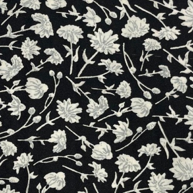 TISSU CHEMISIER CREPE POLYESTER FLEURS NOIR BLANC