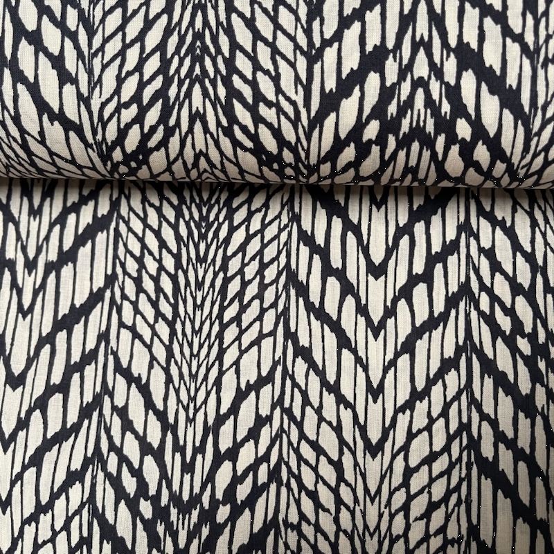 Ce tissu chemisier vague noire fond naturel, c'est le produit idéal pour la confection de chemisiers et robes.