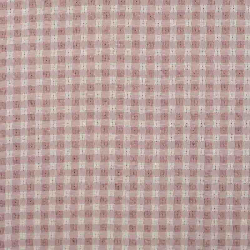 TISSU COTON À CARREAUX ROSE ET ÉCRU