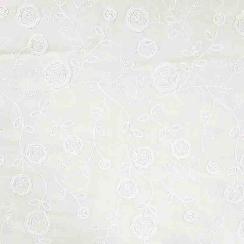TISSU COTON BLANC BRODERIE FLEURS
