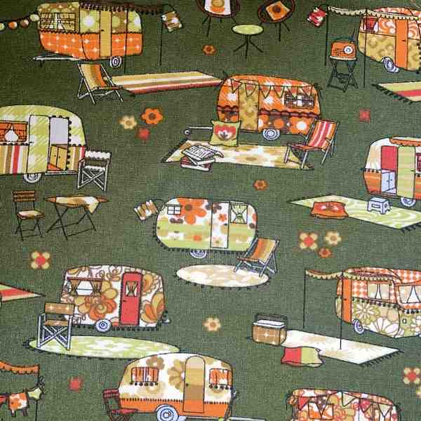 Motif: Des caravanes rétro sur un fond vert olive, offrant un design unique et inspirant, parfait pour les amoureux de l’aventure et du vintage.
