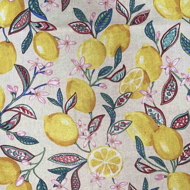Le tissu coton citronnier fond blanc apporte une touche de fraîcheur et de vitalité à toutes vos créations couture. Son motif délicat met en scène de jolis citrons jaunes, accompagnés de feuillages colorés et de petites fleurs, le tout sur un fond blanc lumineux. Cet imprimé fruité et élégant évoque les ambiances méditerranéennes et ensoleillées, parfait pour des réalisations joyeuses et pleines de charme.