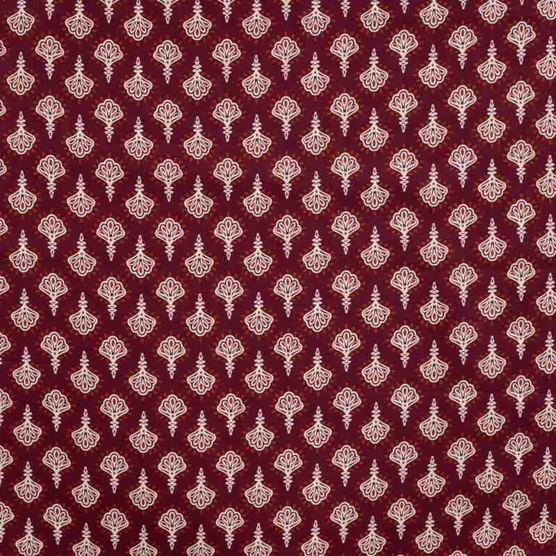 TISSU COTON IMPRIMÉ FLORAL FOND BORDEAUX