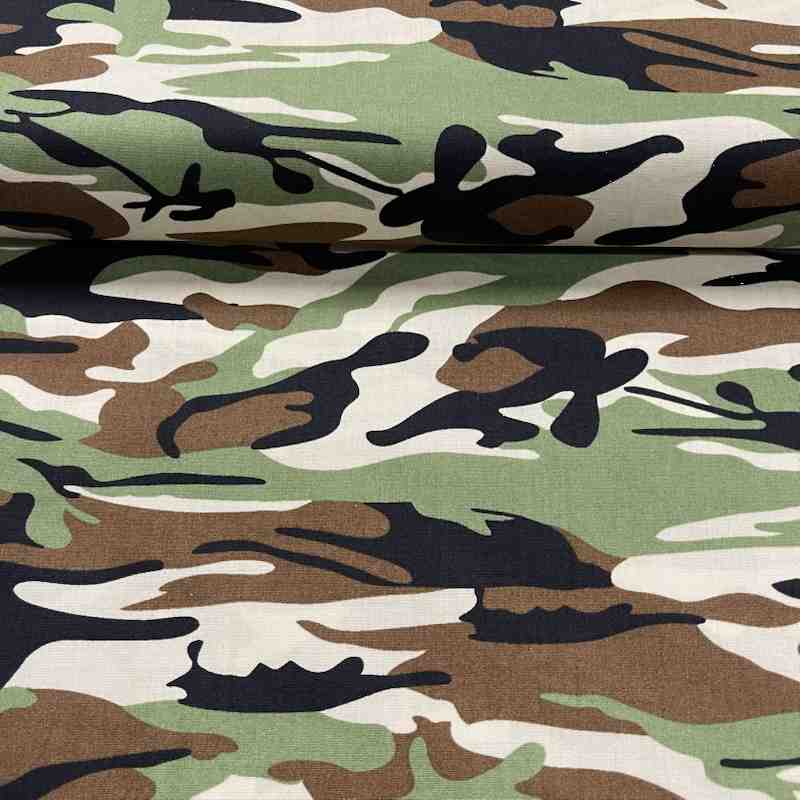Le tissu Coton Imprimé Camouflage Vert Kaki proposé par Tissu Fil et Compagnie est un indispensable pour les créations tendance, robustes et pleines de caractère. Composé à 100 % de coton, il offre une matière naturelle, respirante et agréable au toucher, idéale pour une grande variété de projets couture allant de l’habillement à la décoration.