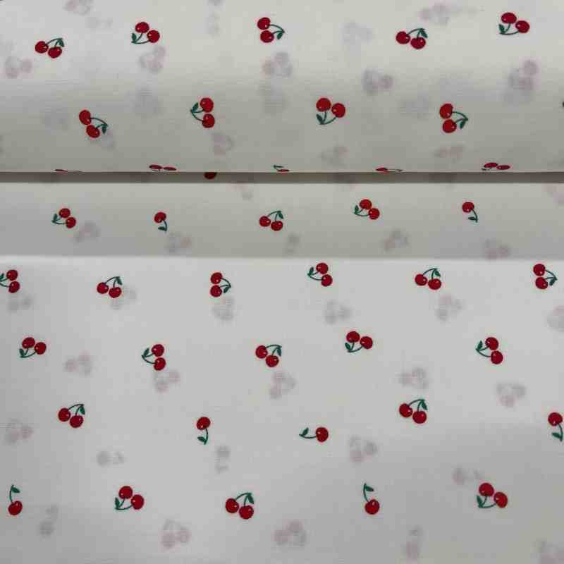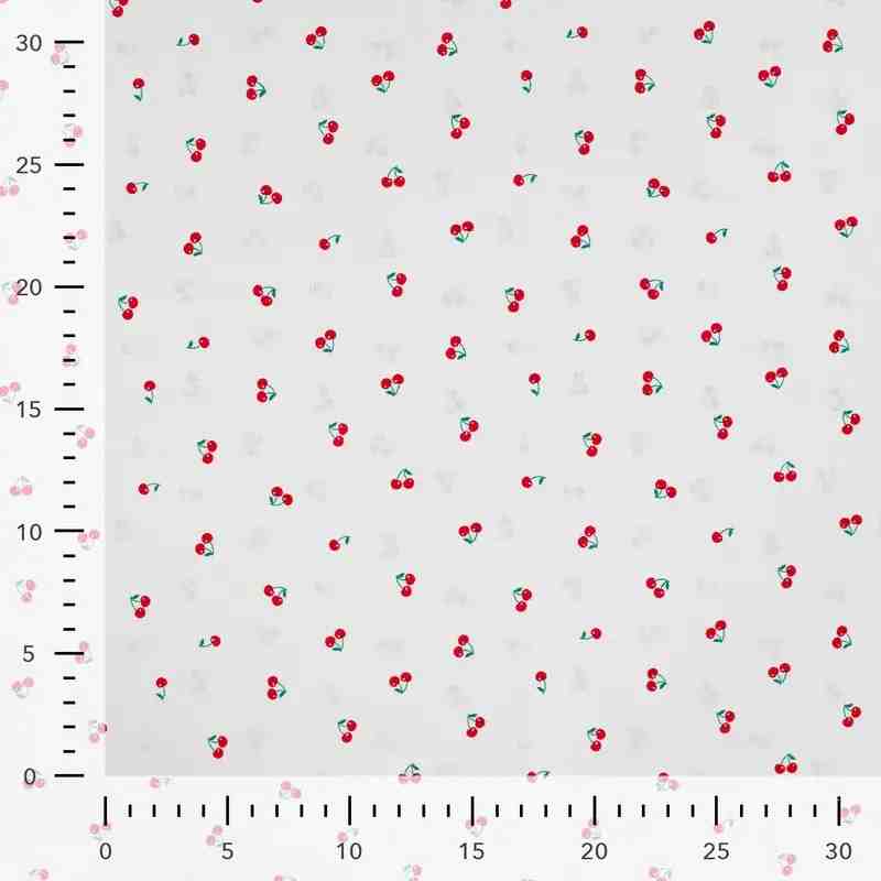 Ce tissu en coton se distingue par son motif délicat représentant de petites cerises rouges réparties harmonieusement sur un fond clair. Ce design frais et intemporel apporte une touche de charme et de gaieté à vos créations, parfait pour des pièces estivales ou des projets destinés aux enfants. Véritable valeur sûre, le coton est reconnu pour sa respirabilité, son toucher agréable et sa capacité à offrir un confort optimal en toutes saisons.