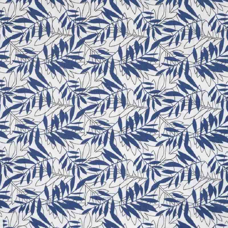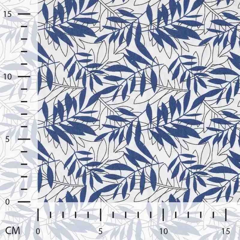 Découvrez ce magnifique coton imprimé 100 % coton proposé par Tissu Fil et Compagnie, un tissu raffiné au motif feuillage bleu marine, idéal pour apporter une touche moderne, naturelle et tendance à vos créations couture. Son motif de branches et de feuilles stylisées se détache harmonieusement sur un fond clair, créant un visuel équilibré, élégant et facile à associer.