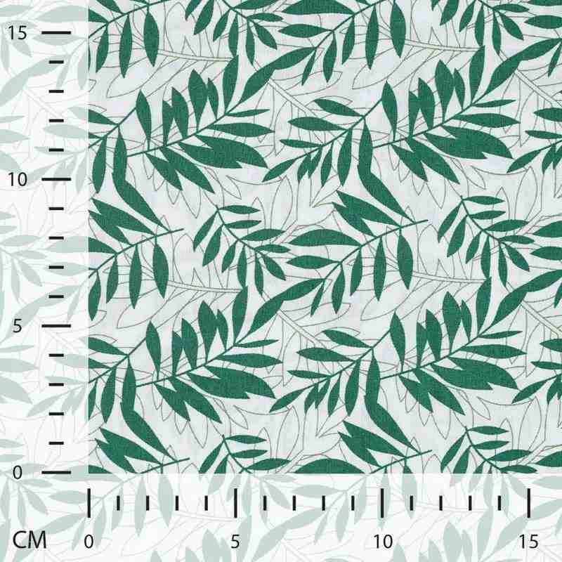 TISSU COTON IMPRIMÉ FEUILLAGE VERT