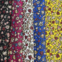 Ce tissu coton imprime fleurettes bleues est idéal pour la confection de robes, chemisiers, tabliers, chasubles, chou-chou et petits accessoires.