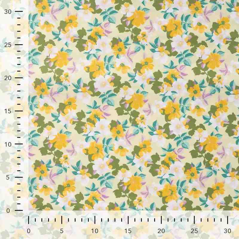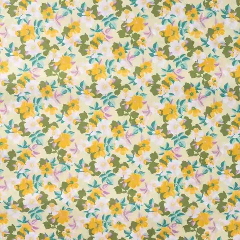 TISSU COTON IMPRIMÉ FLEURS JAUNES ET VERTES