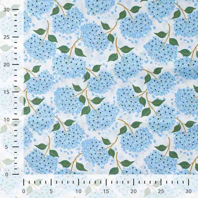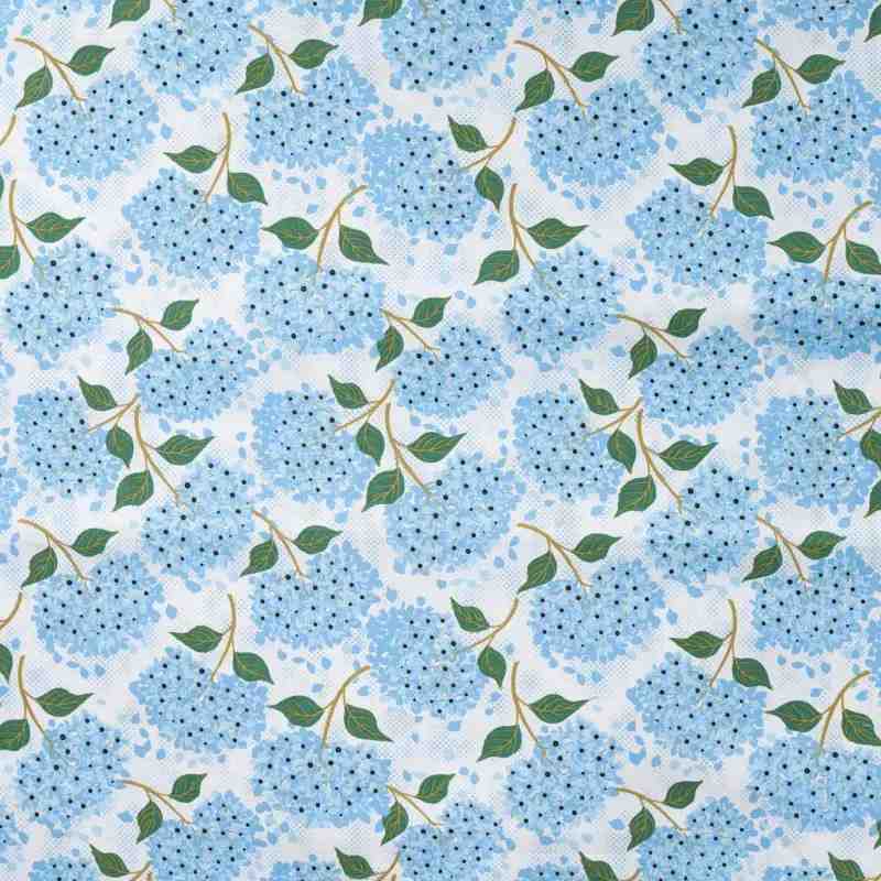 TISSU COTON IMPRIMÉ HORTENSIAS BLEUS