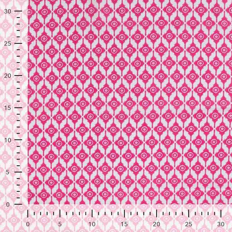 TISSU COTON IMPRIMÉ MOTIF GÉOMÉTRIQUE ROSE BLANC