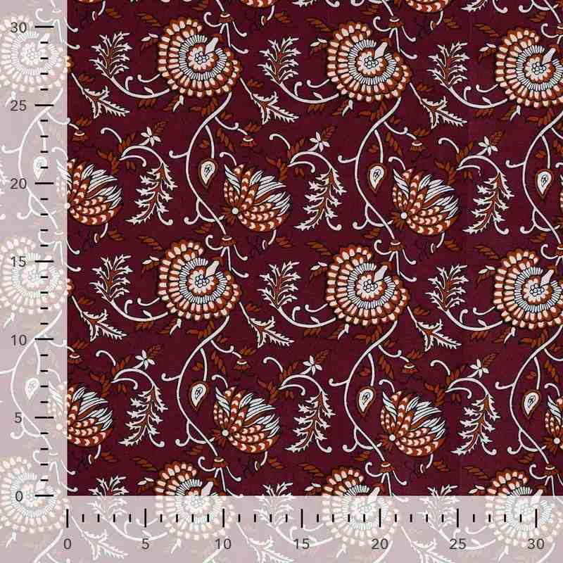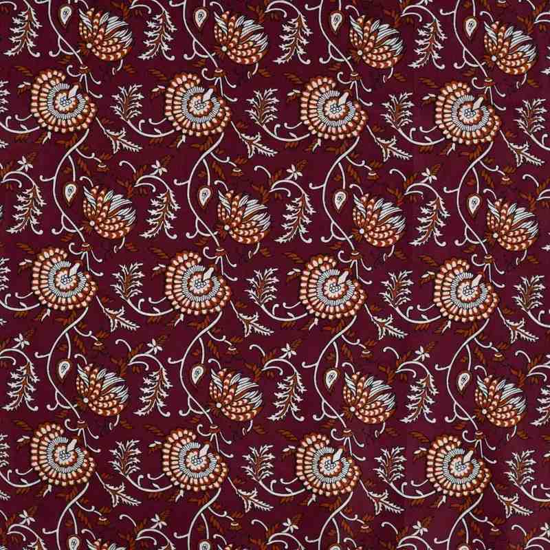 TISSU COTON IMPRIMÉ MOTIFS FLORAUX INDIENS BORDEAU