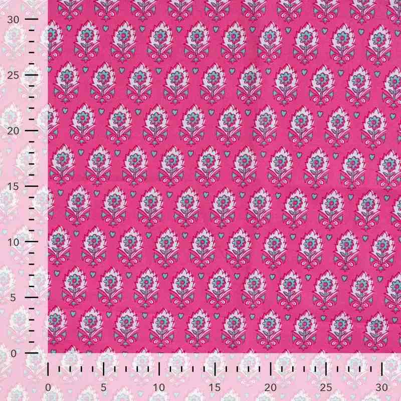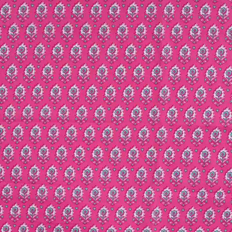 Apportez douceur et originalité à vos créations avec ce tissu coton imprimé aux motifs floraux stylisés, délicatement répétés sur un fond rose lumineux. Son design régulier et harmonieux, ponctué de petits détails décoratifs, évoque un univers à la fois poétique et joyeux. Ce tissu est idéal pour réaliser des projets couture raffinés, colorés et intemporels.