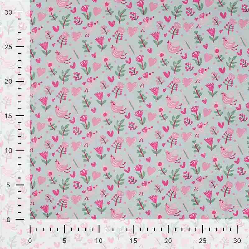 Laissez-vous séduire par la douceur et la délicatesse de ce coton imprimé 100 % coton, proposé par Tissu Fil et Compagnie. Son motif enchanteur mêlant petits oiseaux roses, fleurs stylisées et cœurs délicats crée une ambiance tendre et joyeuse, idéale pour des créations couture tout en poésie. Le fond clair met parfaitement en valeur les nuances roses et vertes, apportant fraîcheur et modernité à vos projets.