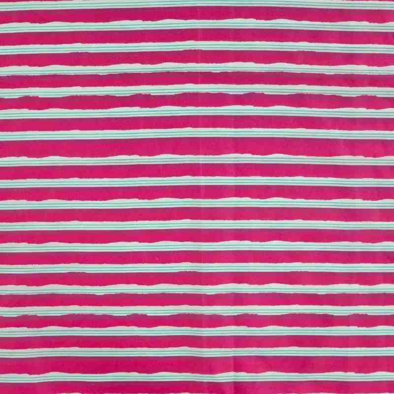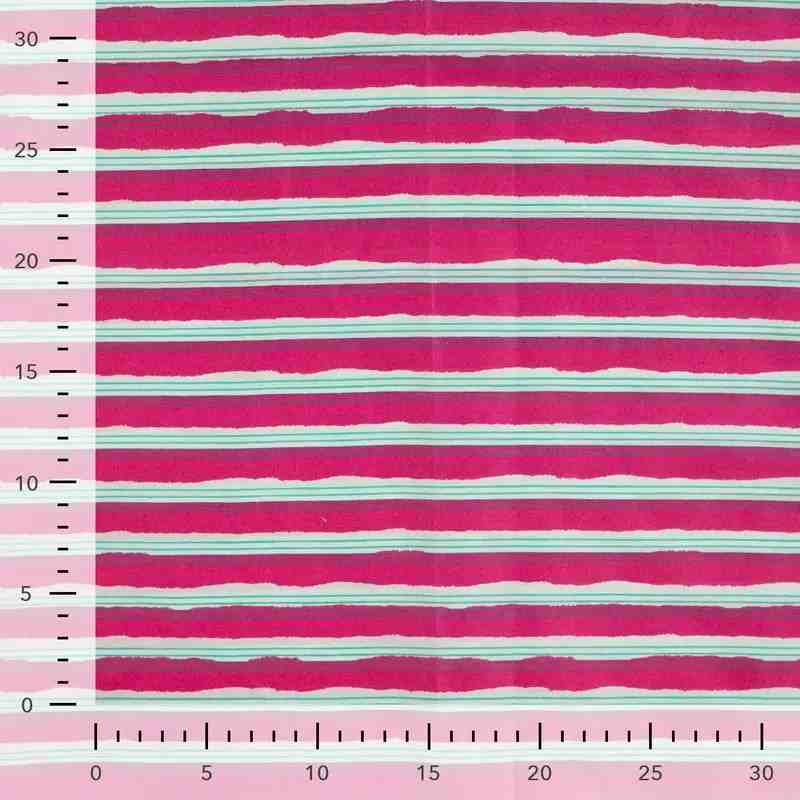 TISSU COTON IMPRIMÉ RAYURE ROSE FILET TURQUOISE