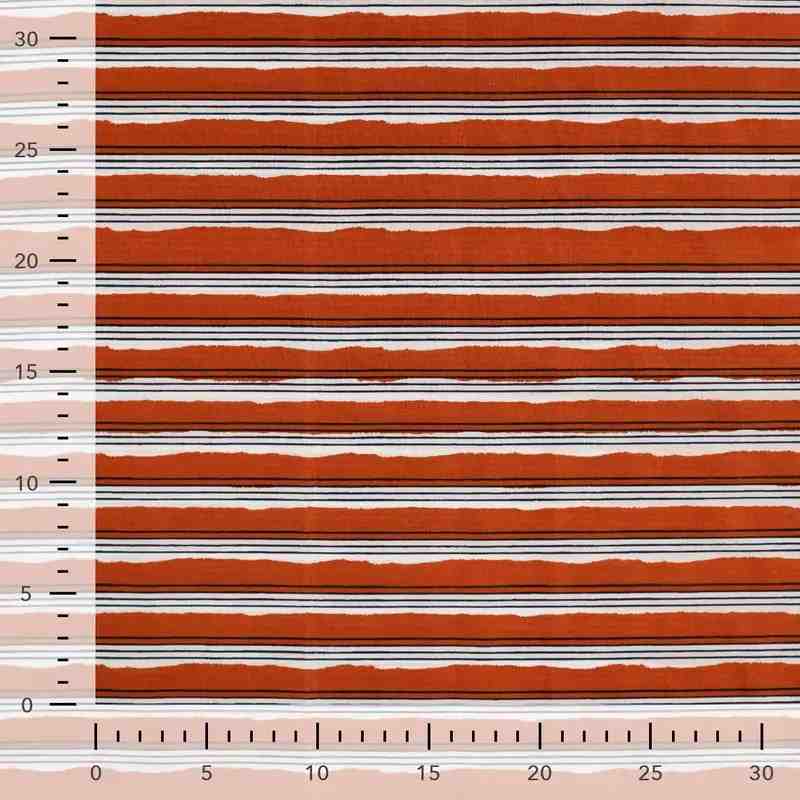 TISSU COTON IMPRIMÉ RAYURES TERRACOTA