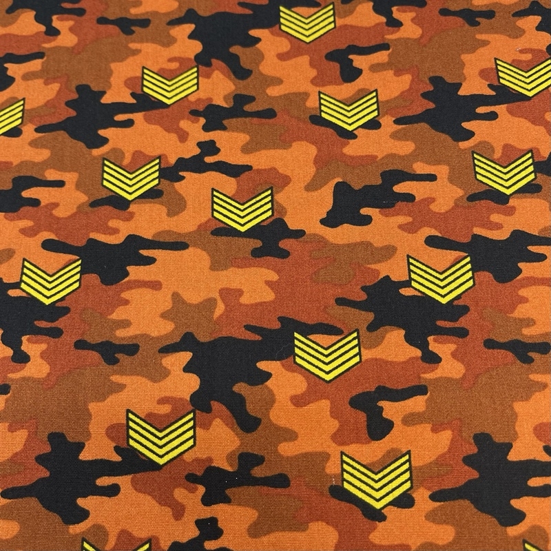 TISSU COTON IMPRIME CAMOUFLAGE ARMEE ORANGE