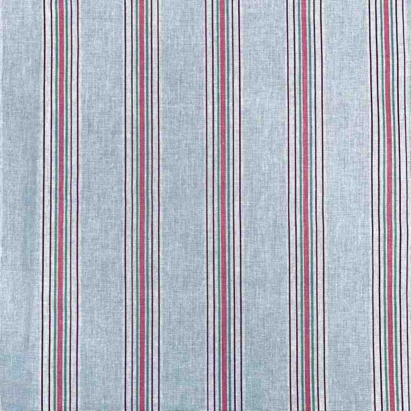 Apportez fraîcheur et authenticité à vos créations avec ce tissu coton imprimé à rayures sur fond bleu, à l’esprit à la fois classique et intemporel. Son fond bleu doux, associé à de fines rayures verticales rouges, vertes et écrues, évoque les tissus traditionnels revisités dans une version plus lumineuse et moderne. Sélectionné avec soin par Tissu Fil et Compagnie, ce tissu s’intègre parfaitement dans des univers déco bord de mer, campagne chic ou maison de famille.