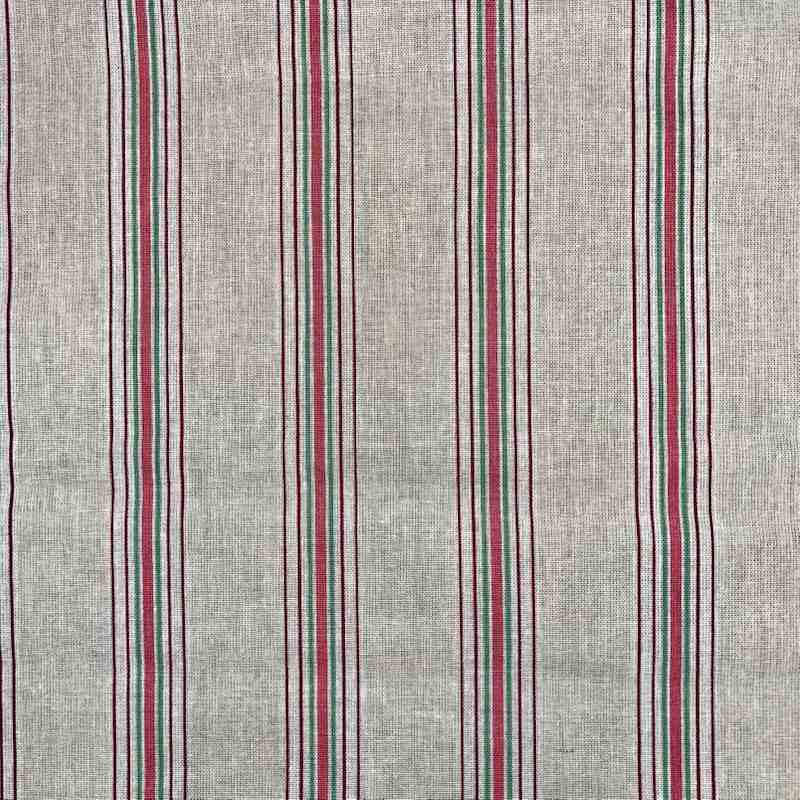 Optez pour l’authenticité et la simplicité avec ce tissu coton imprimé à rayures traditionnelles, au style intemporel et naturel. Son fond écru, rehaussé de fines rayures verticales rouges et vertes, rappelle les tissus classiques d’inspiration basque ou campagne chic. Sélectionné avec soin par Tissu Fil et Compagnie, ce tissu s’intègre parfaitement dans des univers à la fois rustiques, chaleureux ou élégants.