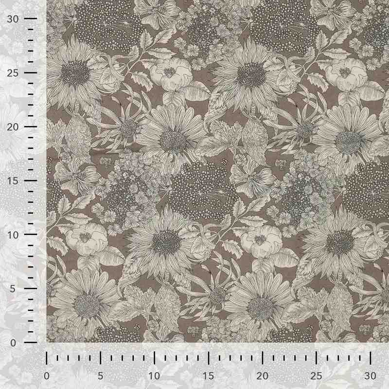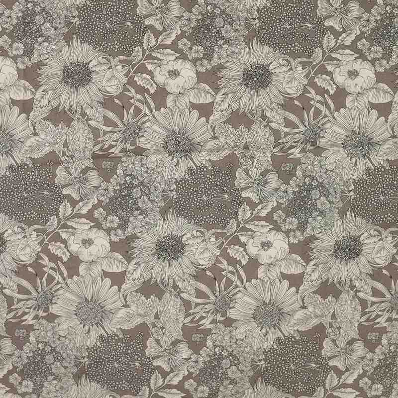 TISSU COTON LIN IMPRIMÉ FLORAL VINTAGE TAUPE