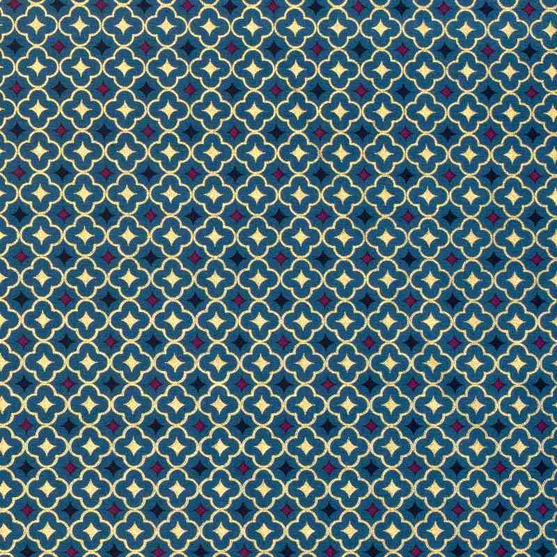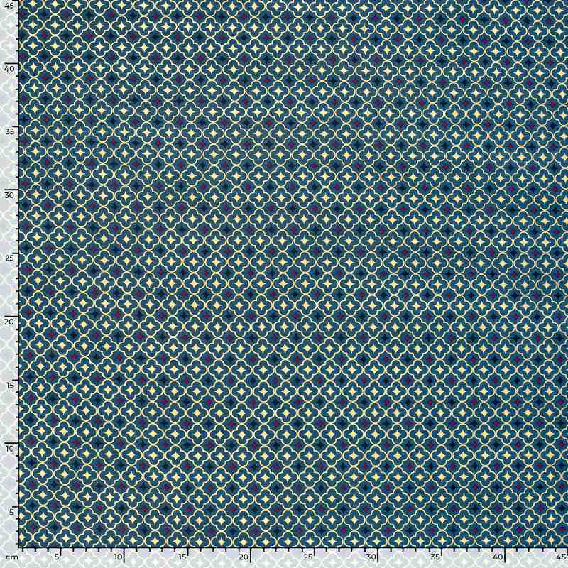 Succombez au charme graphique de notre tissu coton Motif Arabesque Fond vert Canard proposé par Tissu Fil et Compagnie. Inspiré des carrelages zelliges, son dessin régulier de quatre-feuilles ivoire est ponctué d’étoiles fuchsia et marine qui créent un jeu de lumière sophistiqué. Sur un vert canard profond, les couleurs se détachent avec élégance, donnant immédiatement à vos créations une note chic et intemporelle, idéale pour la garde-robe comme pour la décoration.