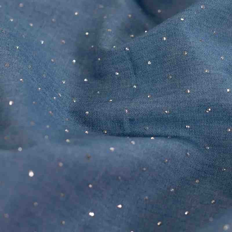 Le tissu coton strass bleu foncé est l’étoffe idéale pour sublimer vos créations grâce à sa brillance discrète et son élégance naturelle. Laissez parler votre créativité et réalisez des pièces uniques, lumineuses et pleines de charme.