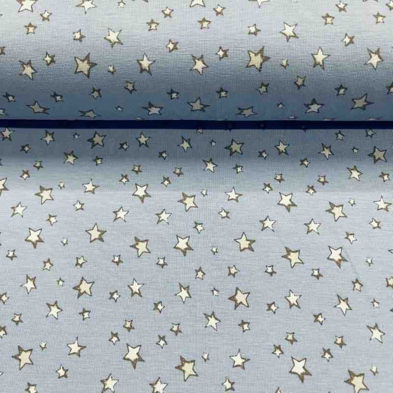 TISSU JERSEY COTON ETOILE FOND BLEU