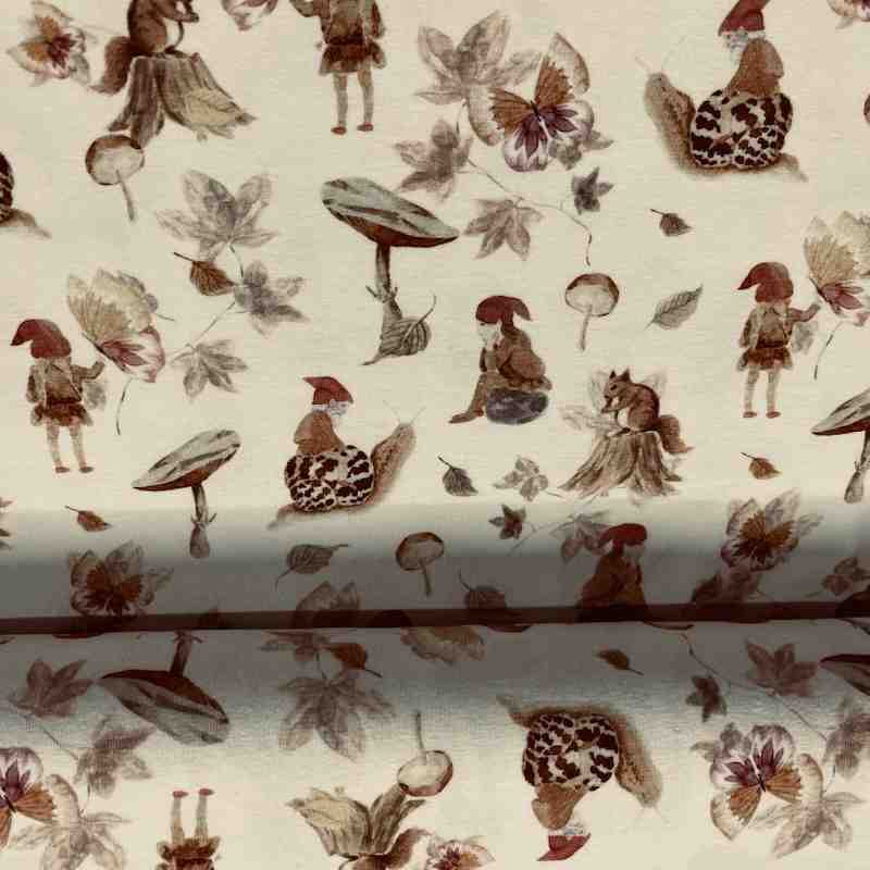 Découvrez ce magnifique jersey coton 95 % et élasthanne 5 % proposé par Tissu Fil et Compagnie, idéal pour créer des vêtements doux, confortables et empreints de poésie. Son imprimé met en scène de petits lutins automnaux, des écureuils, des papillons et des champignons, le tout dans une harmonie de tons chauds allant du beige à l’ocre en passant par le rose poudré. Une ambiance chaleureuse et féerique, parfaite pour les créations destinées aux enfants comme aux adultes aimant les motifs délicats.