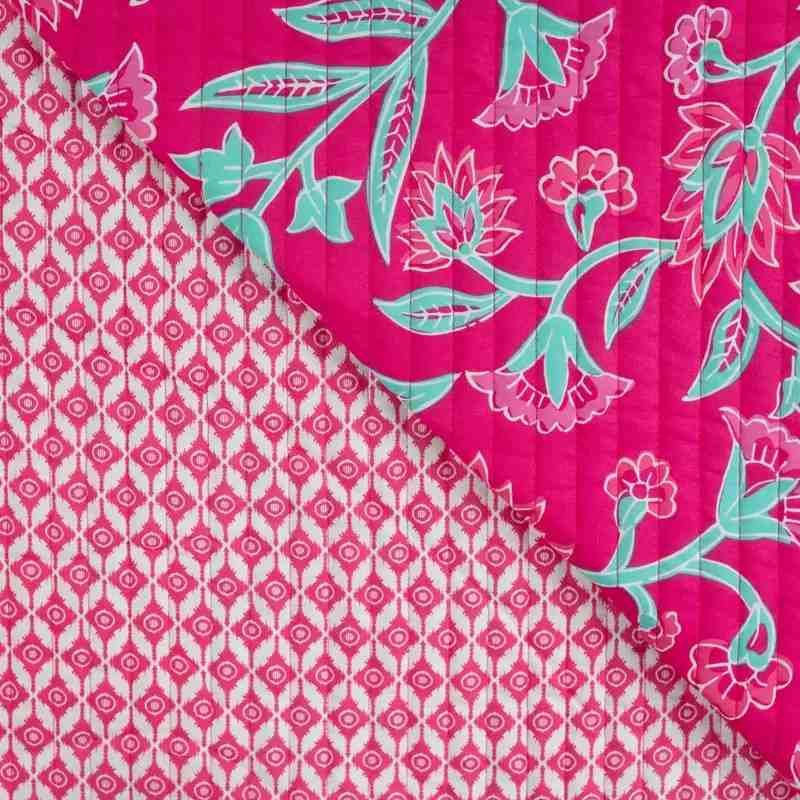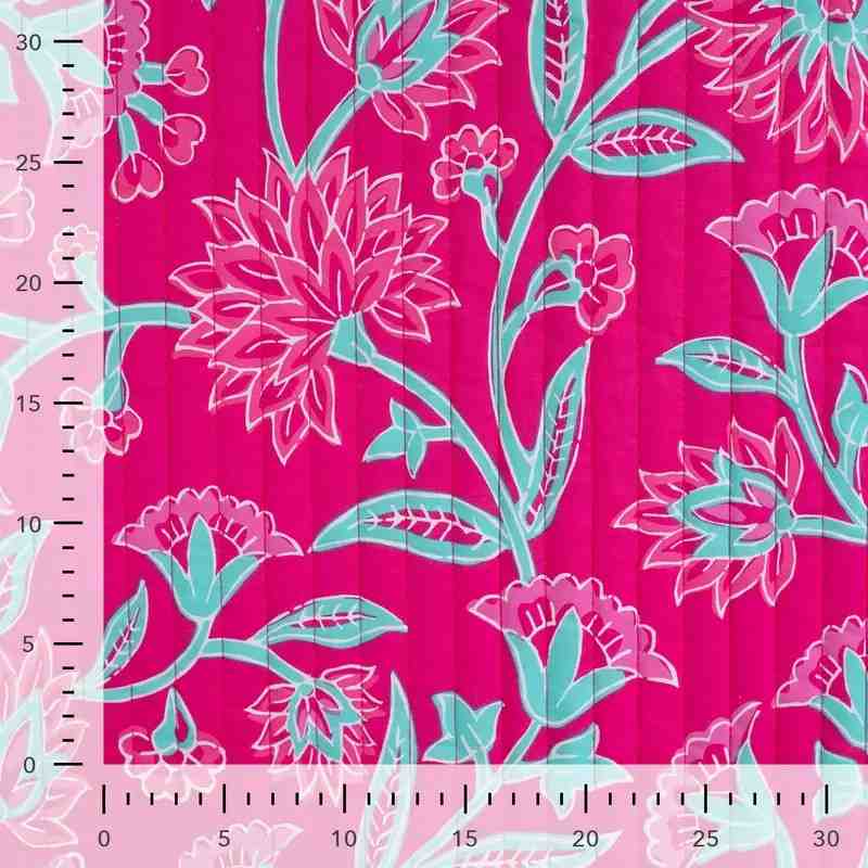TISSU MATELASSÉ COTON IMPRIMÉ RÉVERSIBLE FUCHSIA