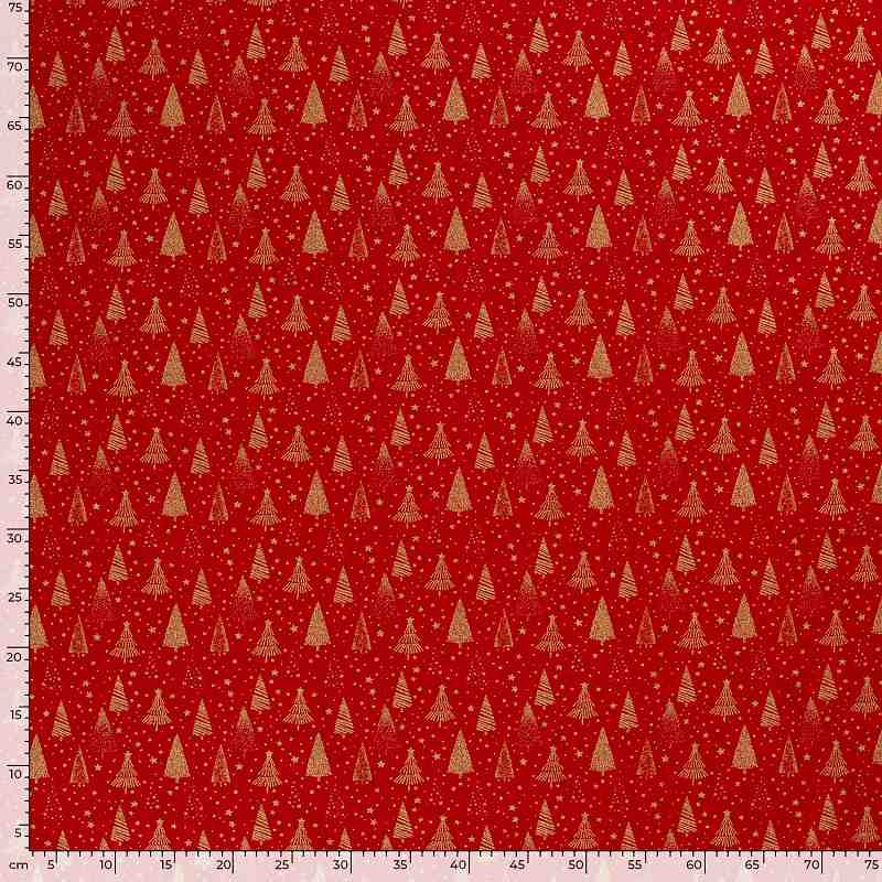 Offrez-vous dès maintenant le tissu Noël coton fond rouge sapin doré : un textile élégant, durable et facile à vivre qui donnera vie à toutes vos inspirations créatives pour des fêtes inoubliables.