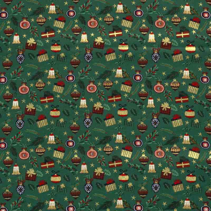 TISSU COTON NOËL CADEAUX ET ORNEMENTS VERT SAPIN