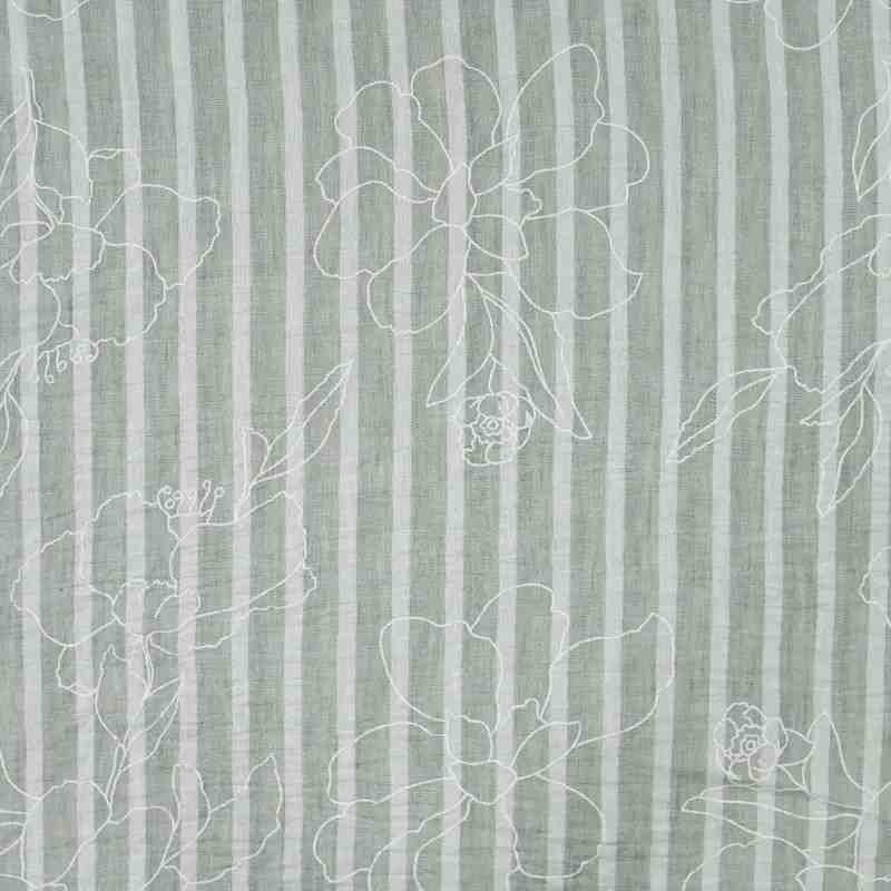 Ce tissu se distingue par son motif rayé vertical gris et blanc, rehaussé d’une délicate broderie florale blanche. Les fleurs brodées apportent un charme raffiné, élégant et très actuel, parfait pour créer des pièces uniques et lumineuses. Ce mélange de rayures et de broderie donne du relief et une belle dynamique visuelle à vos créations.