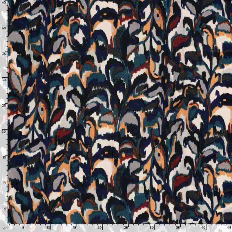 Réinventez vos créations avec le tissu polyester satin imprimé Aquarelle Bleu Canard et Saffran, sélection exclusive de Tissu Fil et Compagnie. Inspiré des coups de pinceau d’une toile abstraite, son motif mêle bleu canard intense, safran lumineux, rouge rubis et touches ivoire sur un fond crème. Le satin capte la lumière et offre une brillance subtile qui fait ressortir chaque nuance, pour un rendu haut de gamme digne des podiums.