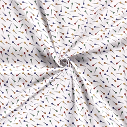 Ce tissu popeline coton oeko-tex flechette blanc est une très belle popeline de coton au tissage très serré avec une impression de qualité Digital et certifié Oeko-Tex.