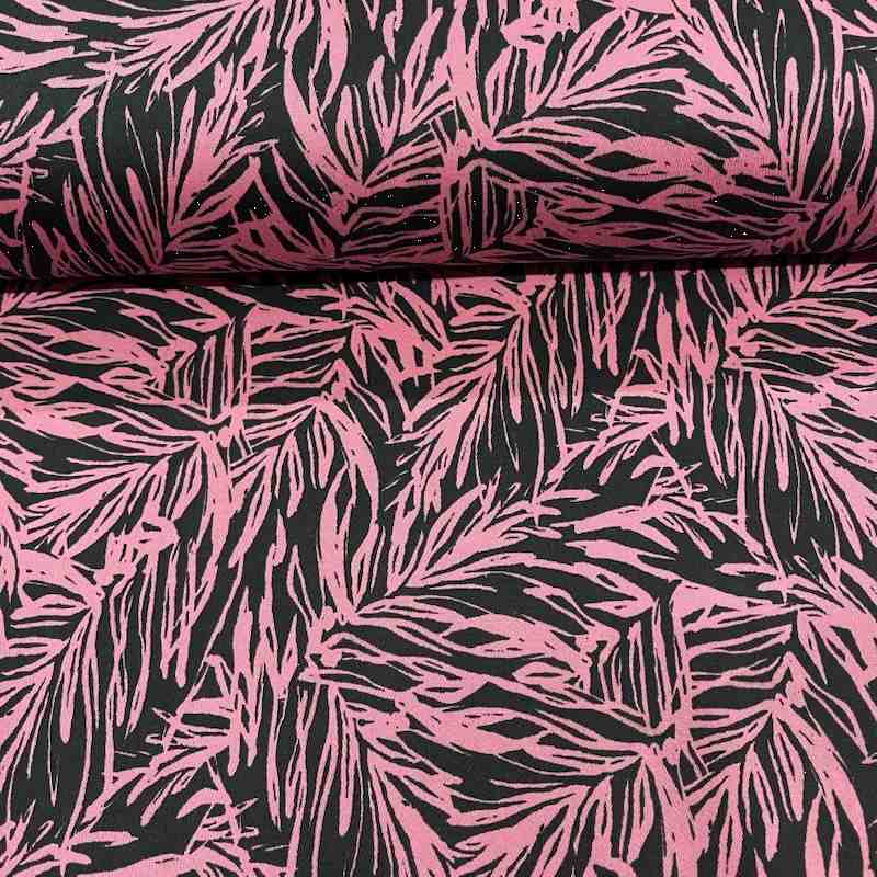Son motif feuillage rose sur fond sombre offre un contraste visuel saisissant et contemporain. Les silhouettes végétales dessinées avec finesse confèrent un style graphique et naturel, parfait pour concevoir des vêtements uniques et tendance. Ce tissu convient aussi bien à la confection de blouses fluides, chemisiers élégants, robes légères, jupes aériennes, pantalons souples ou encore accessoires comme bandeaux, foulards ou pochettes.