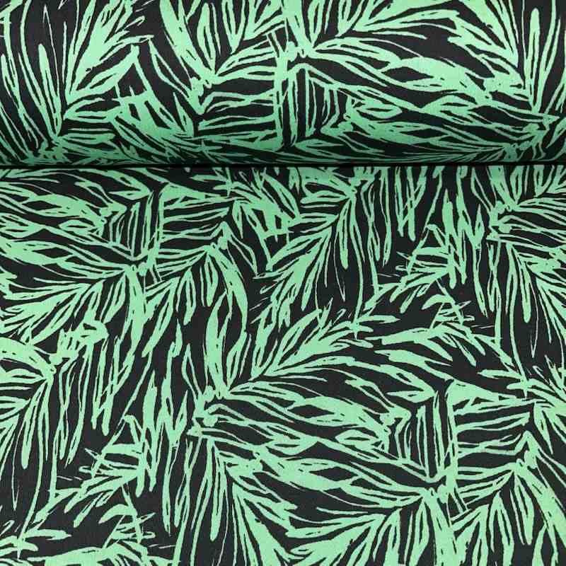 Son motif feuillage vert sur fond sombre crée un contraste saisissant et harmonieux. Les formes végétales stylisées donnent un effet contemporain et dynamique, parfait pour celles et ceux qui souhaitent réaliser des pièces originales et tendance. Ce design inspiré de la nature s’adapte aussi bien à des créations du quotidien qu'à des vêtements plus habillés.