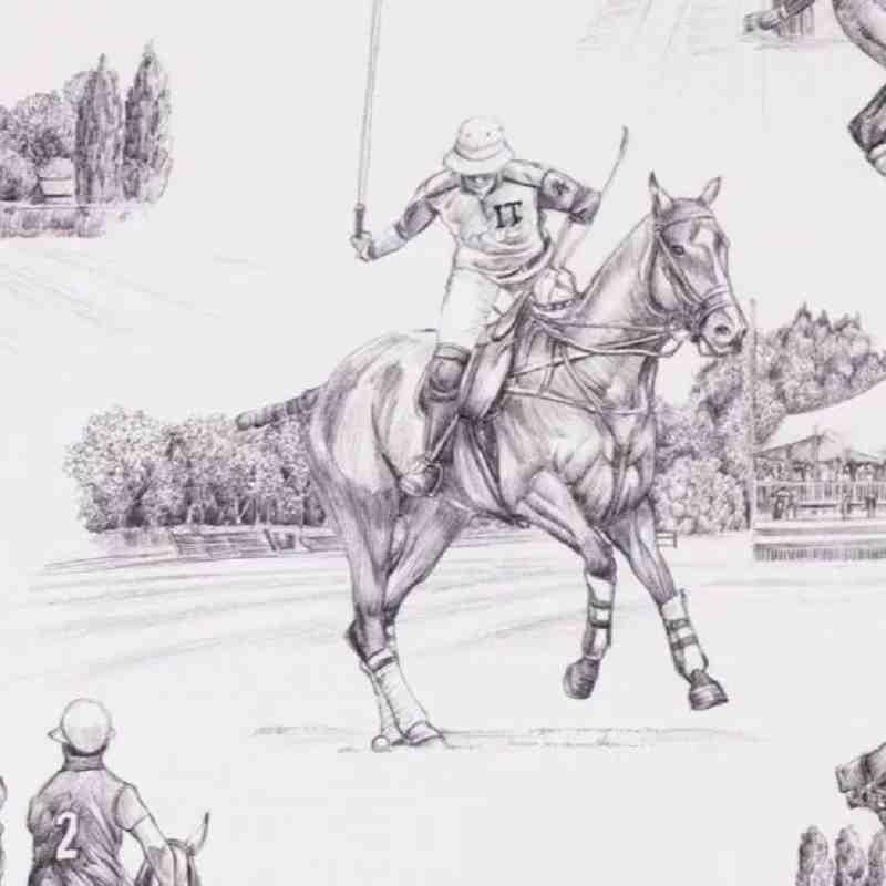 Motif : scène équestre façon croquis, sur fond écru élégant