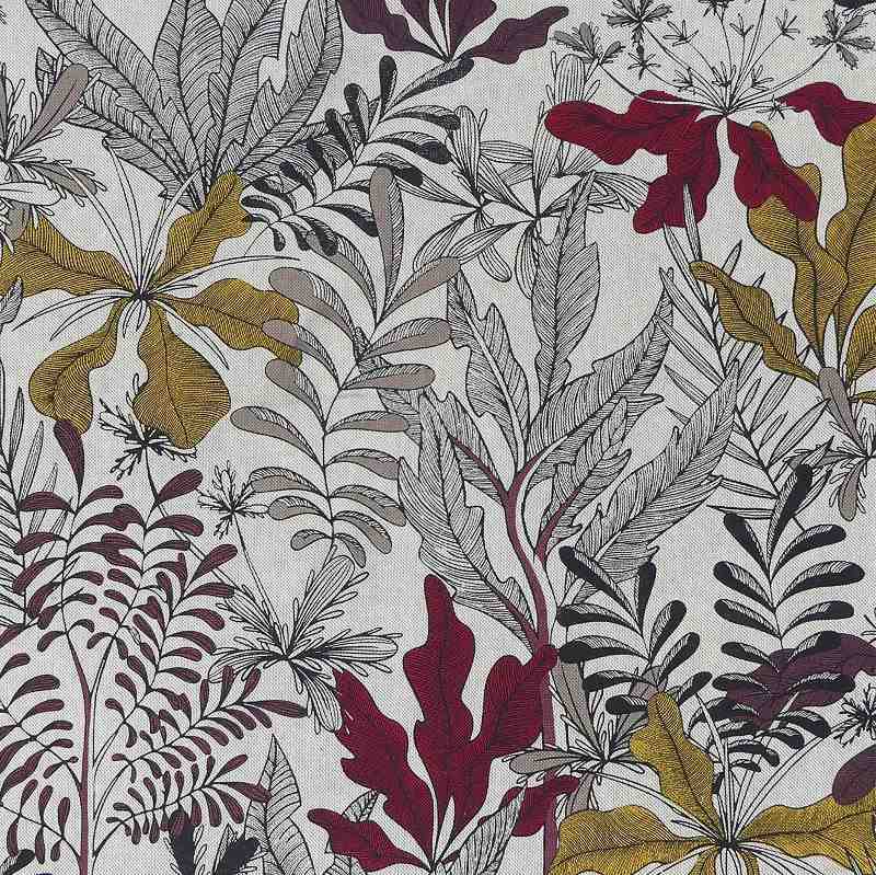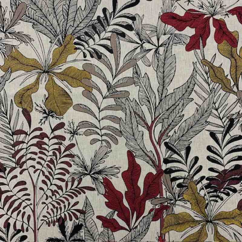Design Raffiné et Exotique : Le motif Bangkok, inspiré des forêts tropicales asiatiques, introduit une touche de nature luxuriante dans votre intérieur ou vos créations vestimentaires. Les couleurs riches et harmonieuses, dominées par un rouge vibrant, ajoutent une dimension de chaleur et de sophistication à ce tissu.