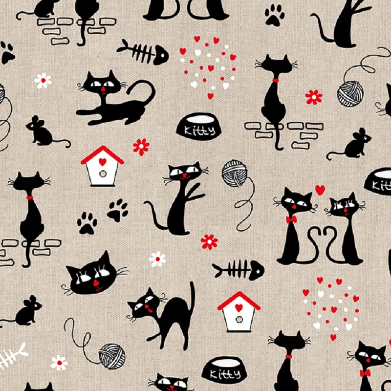 Ce tissu toile aspect lin linenlook chat noir , très original donnera libre cours à votre imagination pour créer à l'infini des coussins, des nappes des pochettes, des trousses ,et pourquoi pas, un tote bag et plus encore.