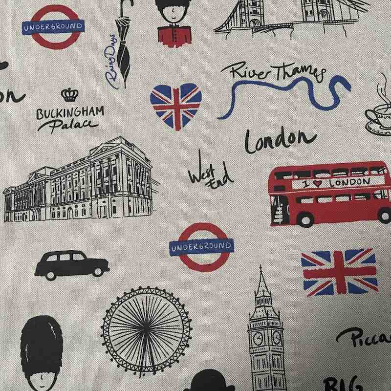 Apportez une touche so british à vos créations avec notre tissu toile aspect lin "Londres". Ce tissu original et tendance met à l’honneur les symboles emblématiques de la capitale britannique : bus rouges à impériale, cabine téléphonique, drapeau Union Jack, Big Ben, Buckingham Palace ou encore les fameuses cabines des gardes royaux. Un véritable clin d’œil au charme londonien qui séduira petits et grands.
