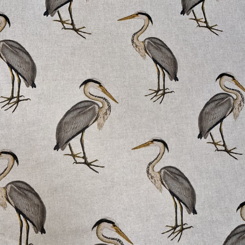 Ce tissu toile aspect linenlook lin oiseaux heron, très original donnera libre cours à votre imagination pour créer à l' infini des coussins, des nappes des pochettes, des trousses et pourquoi pas un tote bag et plus encore.