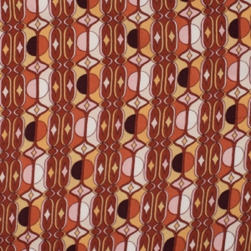 Ce tissu viscose geometrique orange peut être nommé rayonne ou soie artificielle.