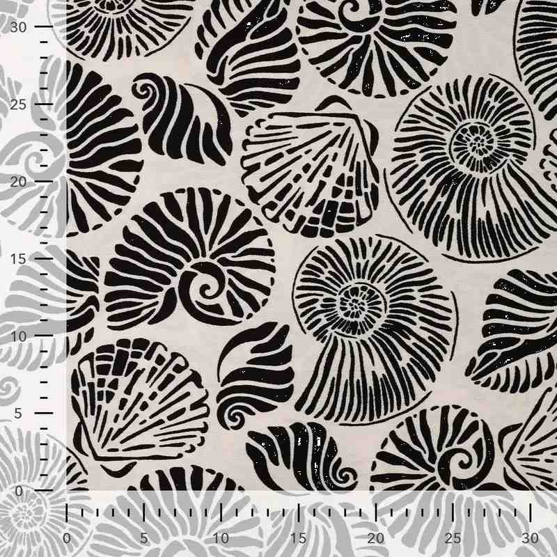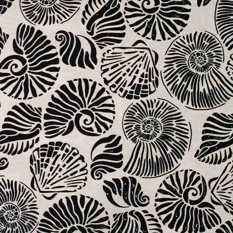 TISSU VISCOSE IMPRIME COQUILLAGES NOIR ET NATUREL